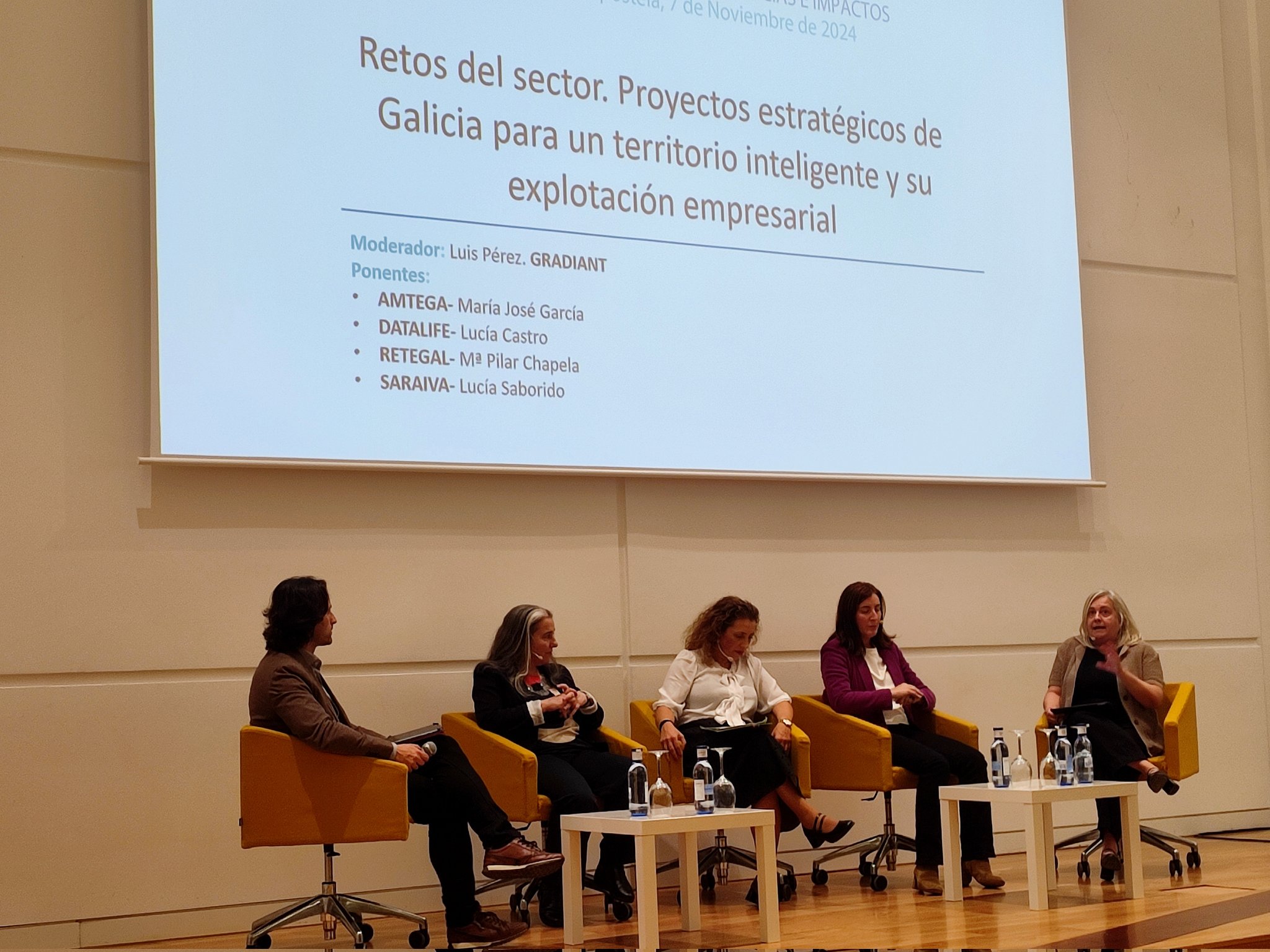 DATAlife tivo a oportunidade de formar parte da mesa redonda Retos do sector. Proxectos estratéxicos de Galicia para un territorio intelixente e a súa explotación empresarial. O Hub estivo acompañado de Retegal, Amtega e SARAIVA.